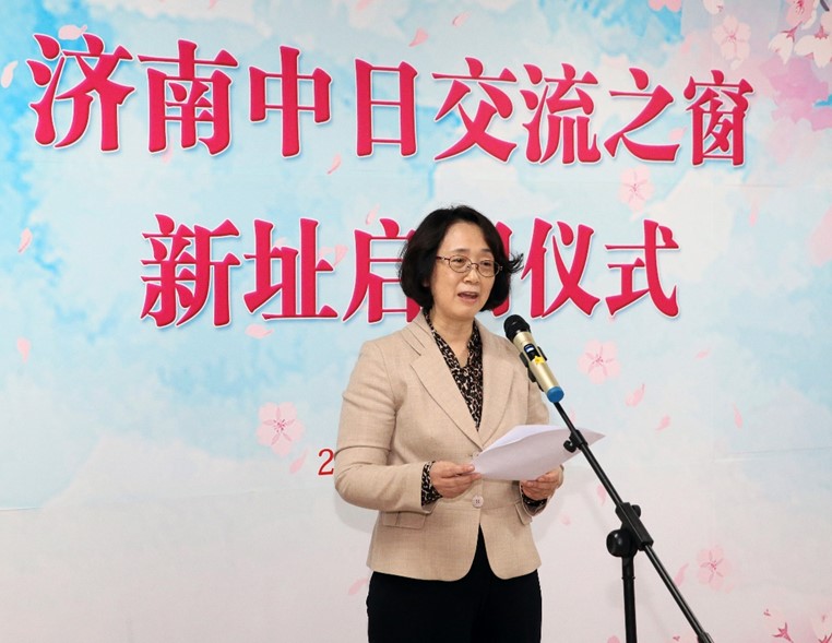 李荣副会长在致辞对新址落成表示热烈的祝贺,并向长期致力于推动山东省与日本友好交流合作的365(vip)英国上市各位领导、老师们和同学们表示感谢,同时她也对在座的长期从事日语研究、对日文化传播的各位来宾也表示了衷心的感谢。她指出:中日两国一衣带水,前几日习近平主席在与日本的新任首相岸田文雄通话时特别强调,中日是近邻,亲人善礼,国之宝也,维护和发展中日友好合作关系,既符合两国和两国人民的根本利益,也有利于亚洲乃至世界的和平稳定和发展。李荣副会长希望济南交流之窗平台在今后的发展过程当中,能够更加广泛的面向社会开放,举办更丰富的一些活动,创新更多的交流合作的品牌,发挥更大的作用,特别是吸引更多的青少年,参与进来,增进他们对日本的兴趣和了解,培养更开阔的视野,投身中日友好事业。