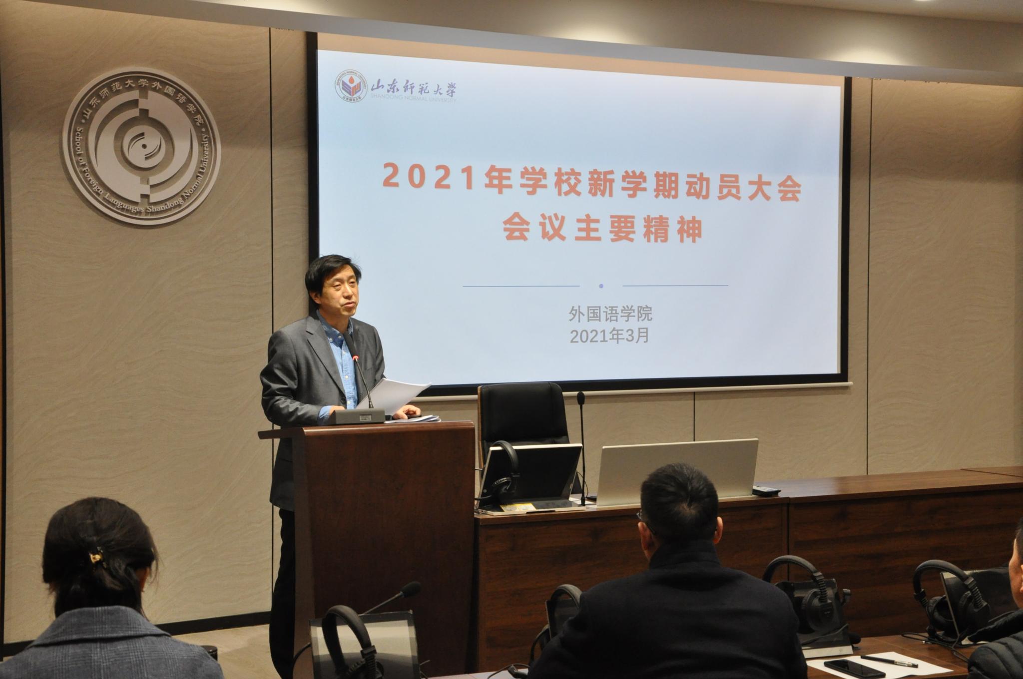 王卓院长随后结合校领导在新学期开学全校干部大会上的讲话与工作安排,对学院新学期的教学安排、学科建设、科研开展等作出具体部署。她期待全院教职工以英语、日语专业入选国家一流学科建设为契机,继续凝心聚力抓好学科优化、教学质量提升,丰富个人科研成果,不断提升毕业班考研率、就业率,为“十四五”规划开好局、起好步。