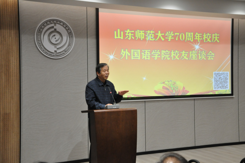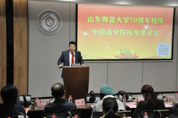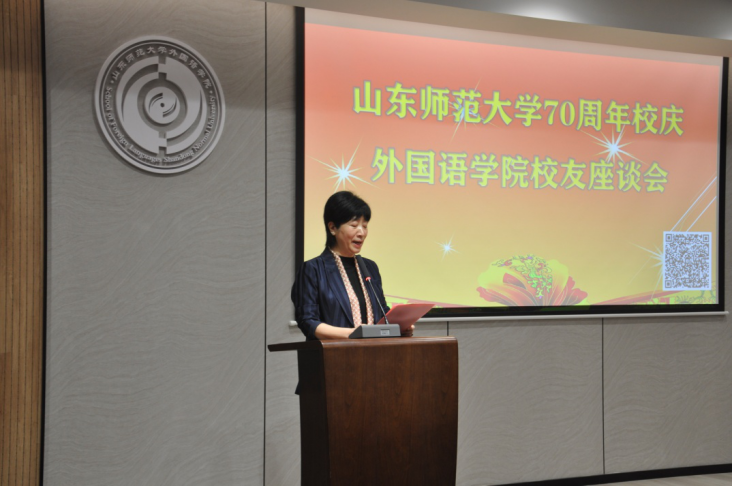 座谈会伊始,院长王卓代表学院致辞,她对来院校友表示热烈欢迎,并向校友们介绍学院近年来各项工作的发展成果、发展状况。她表示,这些成绩的取得是一代代外院人共同努力的结果,是每一位在此工作或学习过的师生共同的荣耀。“70年峥嵘岁月弹指一挥间,共同的记忆和情结熔铸其中,历久弥新。建校70周年,既是学校励精图治的展现,也是学院再谋新篇的起点,期待我们携手并进,以更加昂扬的姿态继续奋斗,以开拓创新精神砥砺奋进,创造出无愧于时代、无愧于历史的新业绩,共同绘就山师大外院更加气势恢宏的绚丽华章!”
