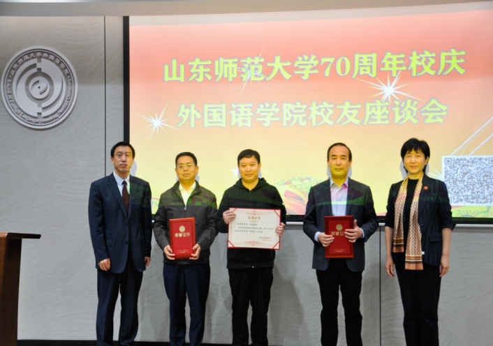 座谈会在和谐欢乐的气氛中顺利结束,与会嘉宾们合影留念后共同参观了学校建校70周年成就展、学院办公教学区与《山东外语教学》编辑部。