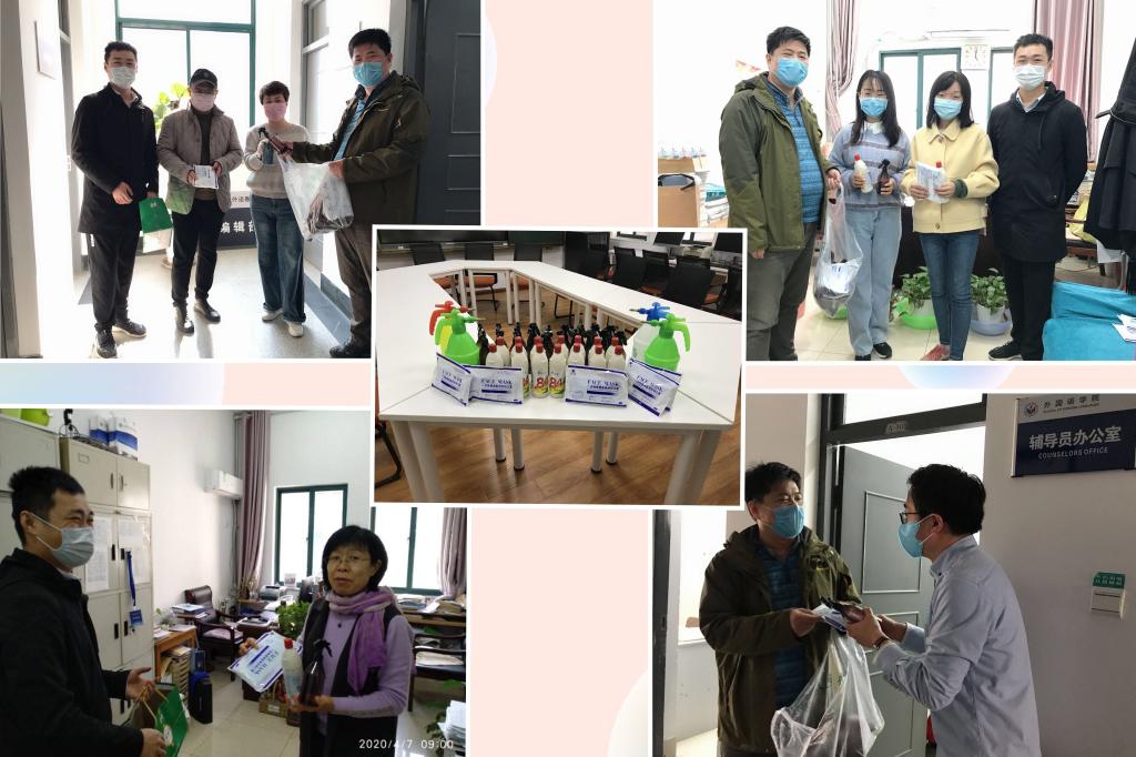 为保障各岗位人员的工作及为学生返校做好准备,学院提前规划、合理布置,提前购置了口罩、消毒液、体温计等一大批防疫物资。4月7日一早,学院党政办工作人员将提前准备好的口罩、84消毒液、喷壶等防疫物资发放到各个办公室,提醒工作人员做好办公室的消毒工作,营造干净、整洁的工作环境。