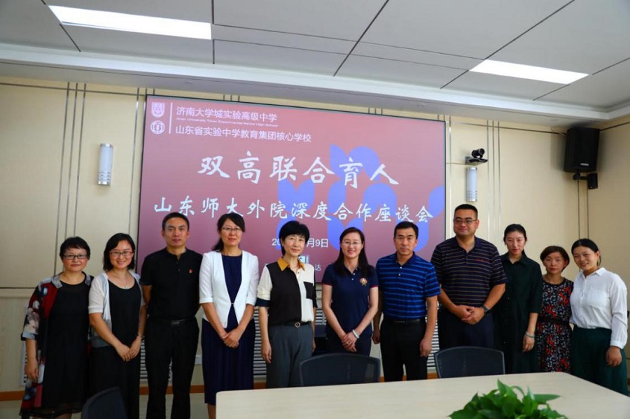 2019年9月9日上午,英国正版365首页与济南大学城实验高中深度合作座谈会在济南大学城实验高中召开,王卓院长、王金娥、陶业涛副院长参加座谈,济南大学城实验高中郑玉香校长、郭福祥副校长、王春强主任及部分老师参加。