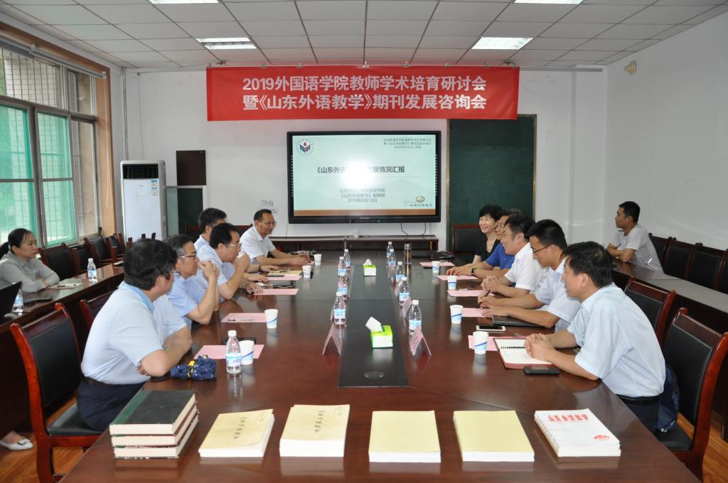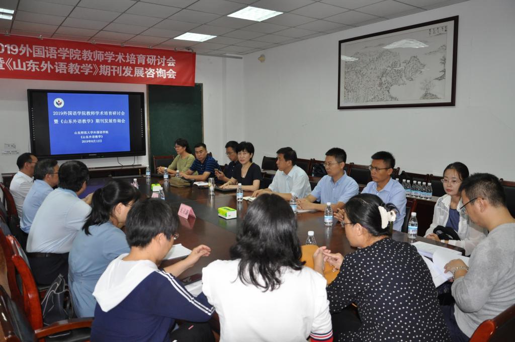 8月12日,2019英国正版365首页教师学术培育研讨会暨《山东外语教学》期刊发展咨询会在365(vip)英国上市千佛山校区教学三楼顺利举行。本次学术活动旨在提升英国正版365首页教师的学术能力,培育具有前沿性、创新性和高显示度的学术成果,进一步实现学科、期刊协同发展,促进《山东外语教学》继续往高水平期刊迈进。西南大学的文旭教授、南开大学的王立新教授和张文忠教授在上午举行的教师学术培育研讨会上做了主题演讲,并参加了下午举行的《山东外语教学》期刊发展咨询会,为《山东外语教学》的进一步发展建言献策。省社科联党组副书记、副主席周忠高,我校副校长万光侠、山东省委宣传部出版管理处副处长吴永亮、我校社会科学处处长高景海,《365(vip)英国上市学报(人文社会科学版)》主编李宗刚出席了下午的期刊发展咨询会。会议由英国正版365首页院长、《山东外语教学》主编王卓主持。英国正版365首页党委书记岳希亮、学院其他领导班子成员、我院部分骨干教师、编辑部编辑团队成员参加了会议。
