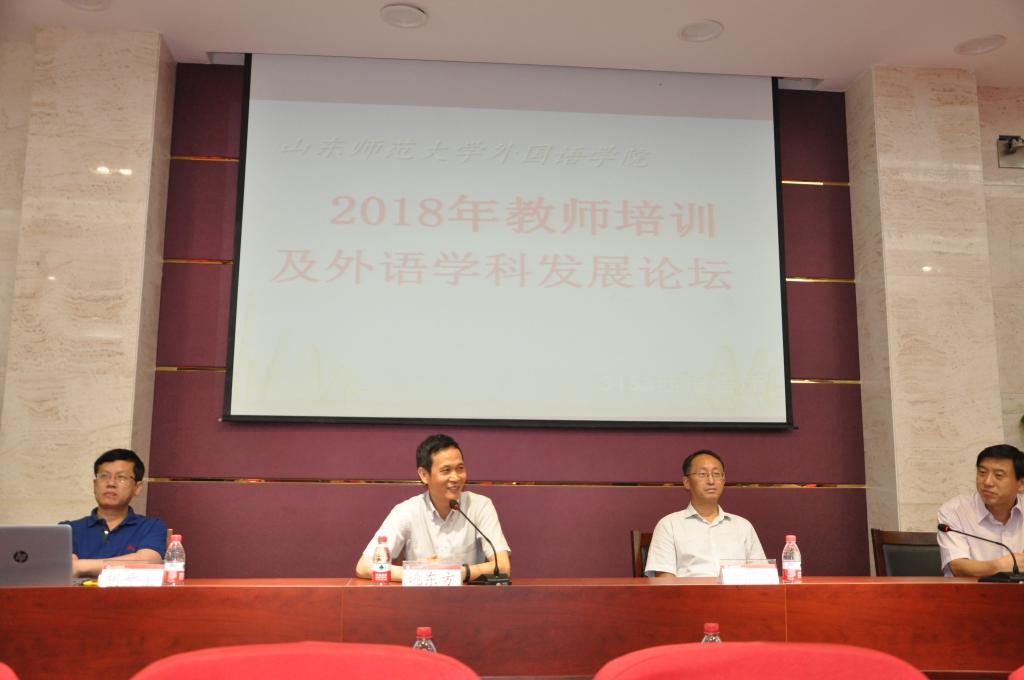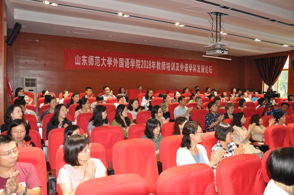 英国正版365首页2018年暑期教师培训及外语学科发展论坛共分成二个阶段展开。第一个阶段8月20-21日。在长清湖校区第1报告厅学院教职工参加了学校统一组织的暑期教师培训活动。8月20日上午“2018年新聘教师培训开班典礼暨入职宣誓仪式”上,党委书记商志晓发表了热情洋溢的讲话。他指出,努力培养造就一批一流教师,不断提高教师队伍整体素质,是当前和今后一个时期学校事业发展最紧迫的任务,青年教师是学校师资队伍的重要力量和生力军,是学校的未来和希望,高水平年轻教师的加入,为学校“十三五”期间教学科研水平的提升,为加快建设国内一流综合性师范大学储备了人才、积蓄了力量。校长唐波为全体教职工讲了开班第一课:《新时代高校教师的责任和担当》。他围绕高等教育改革发展形势,从国内外环境、全国高等教育形势、全省和学校四个层面详细解读了学校目前的发展状况,并总结了近几年我校在人才队伍、学科建设、教学科研及对外合作等方面取得的可喜成绩,分析了存在的问题,提出了学校今后几年的改革思路与发展举措。他希望新教师进一步树立主人翁意识,勇于担当,建功立业,助力学校早日实现国内一流综合性师范大学的奋斗目标。