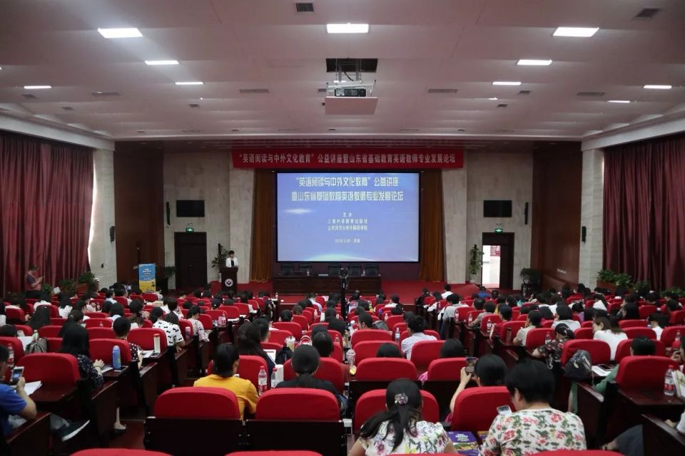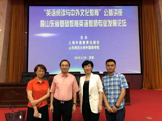 2018年5月29日,由上海外语教育出版社与英国正版365首页共同主办的“英语阅读与中外文化教育公益讲座暨山东省基础教育英语教师专业发展论坛”在365(vip)英国上市千佛山校区成功举行。来自全省多个地区的中小学英语教研员、中小学校长和中小学英语教师,以及英国正版365首页英语学科教学和课程与教学论学位点的部分师生近三百人参加会议,5000多位老师通过网络直播在线观看了论坛。