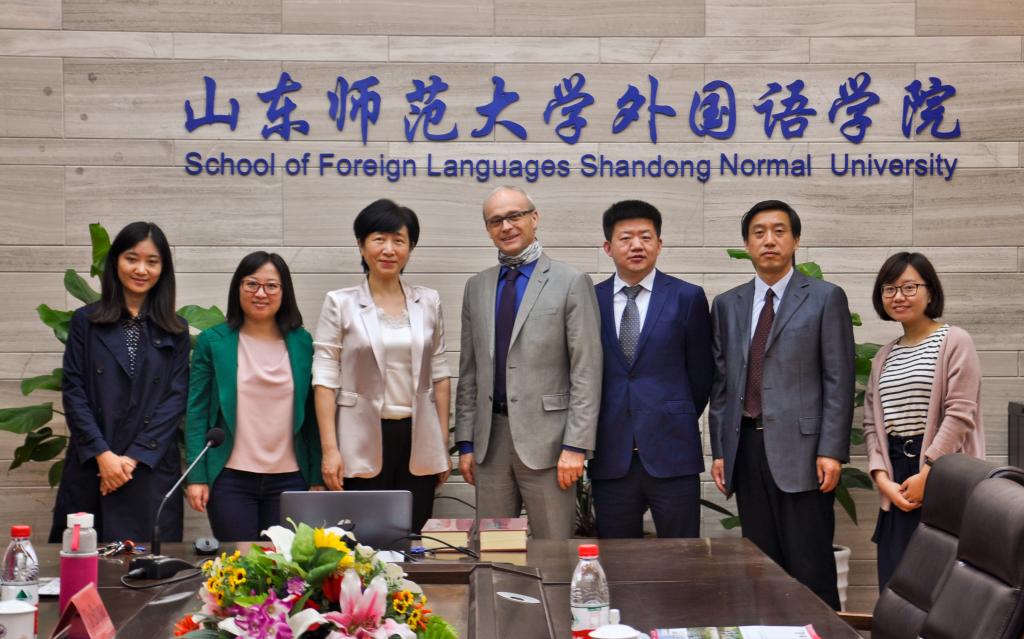 5月22日上午,法国昂热西天主教大学国际处主任让·罗宾及中国办公室负责人杨伟波做客英国正版365首页进行交流访问。英国正版365首页院长王卓、党委书记岳希亮、西方语系系主任曹淑娟及法语专业教师代表夏冰洁、马姗姗参加会谈。双方就法语专业赴法短期交流、其他专业赴法进行语言学习和法语专业教师短期赴法进修等项目展开交流探讨。