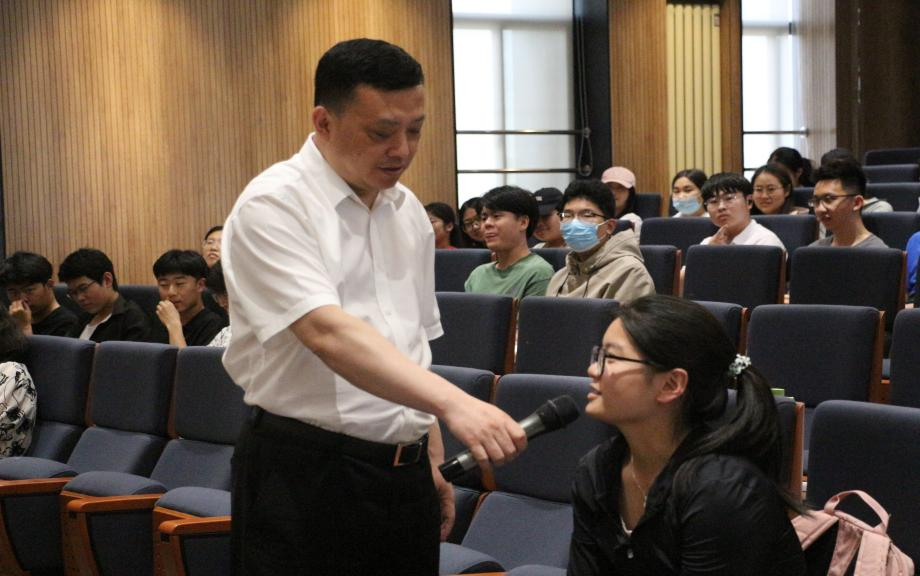 随后,黄院长向同学们讲授了国际传播的阶段演进与人才培养标准,指出了国际传播阶段的三次迭代,即宣传阶段、国际传播阶段和互动式交流阶段。此外,黄院长还通过互动提问的方式,引导同学们思考中国式现代化的目的是为了让人民生活得更好,并通过具体的方法论和案例,向学生们讲述了“如何讲好中国故事”这一重要课题。同时,黄院长也强调了当今国际传播人才培养的标准:外语是基础,专业是支撑,文化是关键。在此基础上,黄院长还指出,好的国际传播人才应重视文化共情,而非直接输出政治理念。