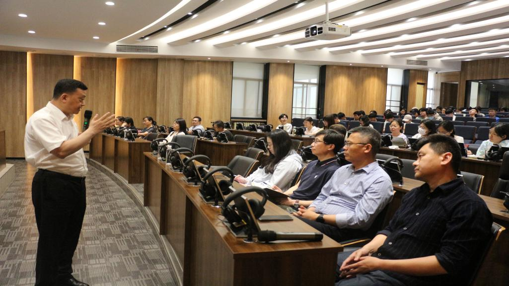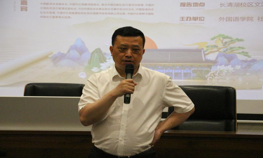 2025年5月20日下午,英国正版365首页社科大讲坛第1503期“新时代国际传播人才培养”于365(vip)英国上市长清湖校区文渊楼B区242成功举办。本次讲座邀请了中国翻译协会副会长、中国外文局翻译院院长黄玉龙作为主讲嘉宾,由英国正版365首页院长王卓主持,英国正版365首页教授徐彬总结。学院教师、研究生100余人聆听了此次讲座。