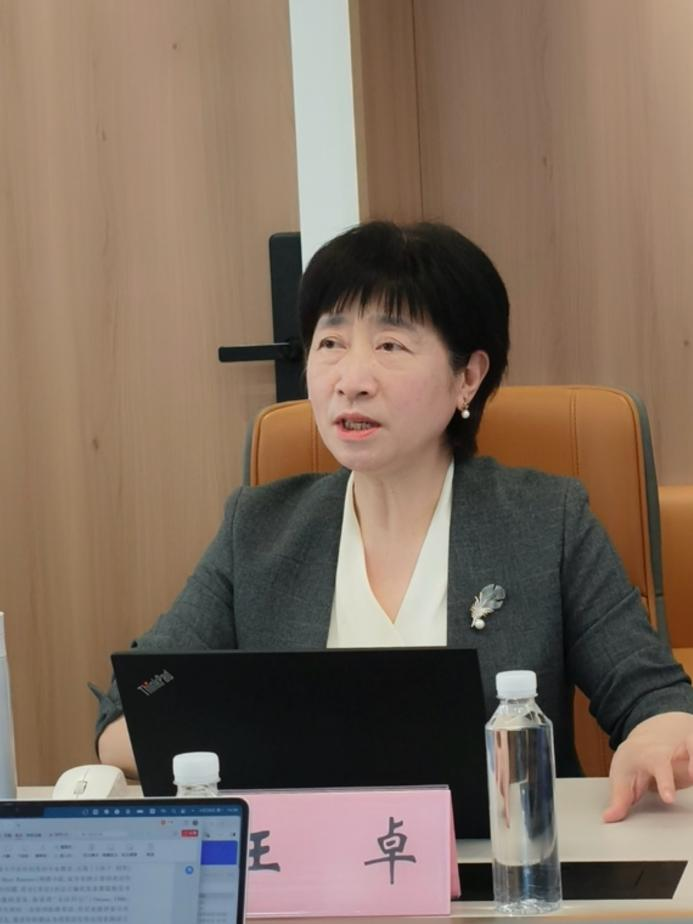 随后,王卓教授对翟乃海教授的发言进行了精彩点评。她指出翟教授的学术研究视角和转型路径极具前瞻性,非常契合当前外语学科跨文化、跨区域研究的发展趋势。王卓教授特别强调,在我国对外发展战略需求和AI赋能的背景下,外语学科的教师应当突破传统研究领域的局限,在研究领域、研究对象、研究范式、研究方法等方面勇于探索,积极寻求学术转型之路。学术转型虽面临挑战,但唯有打破思维定式,才能开拓更广阔的研究空间,也才能对我国自主知识体系创新发展和人才培养做出外语学人的积极贡献。她风趣地借用“无产者”的比喻,鼓励教师们摆脱固有研究范式的“枷锁”,积极拥抱新兴领域,比如外国文学研究的区域国别转型、数字赋能的外国文学研究与外国文学教育、文学与其他学科的交叉发展等。我院外国文学研究团队近年来对非洲教育成长小说、非洲马克思主义文论、非洲文学教育等领域的探索就是这种转型的代表。王卓教授还针对具体研究方向,分别为在座的教师和研究生提供了以非洲为主体的选题方向和极具启发性的建议。