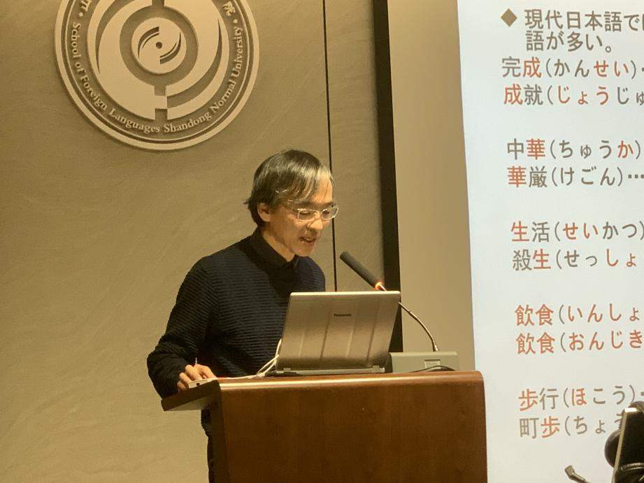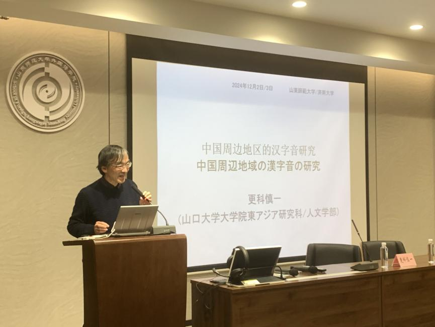 讲座的第一部分由更科慎一教授主讲,主题为《中国周边地区的汉字音研究》。他以一个启发性的提问“日语中的‘汉语词’是外来语吗?”开篇,从日语中的汉字词汇切入,逐步揭示日本汉字音的起源与发展历程。他讲述了汉字随文化交流传入日本的历史脉络,并通过丰富的学术资料说明了现行日本汉字音为何存在多种读音的原因。