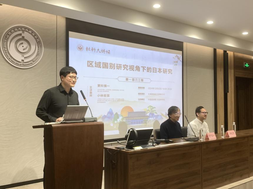 2024年12月2日晚上7点,英国正版365首页联合社会科学处成功举办了第1463期社科大讲坛,主题为“区域国别研究视角下的日本研究”。本次讲座特邀山口大学人文学部、人文学研究科及东亚研究科的更科慎一教授和小林宏至教授作为主讲嘉宾,由英国正版365首页日语系教师郭睿麒博士主持。日语系主任崔颖副教授、副主任孙守峰副教授及宋炜博士等日语系教师、研究生和本科生一同出席了此次讲座。与会人员不仅认真聆听,还在互动交流环节表现出极大的热情与积极性。