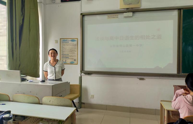 在讲座中,王晓丽老师首先以山东省微山县第一中学为例,分析并介绍了高中日语班学生的整体学习水平,指出日语教师在学生成绩提升中的重要作用。接着,王老师主要从三个方面总结并介绍了与学生的相处之道。即,教师应通过多种途径尽快了解学生;不断提高专业水平和教育水平,获得学生认可;磨练性格,形成外向而稳定的风格。针对如何了解学生这一问题,王老师通过讲述高中日语教学现场的真实案例,从学生的能力和性格两个维度进行了讲解。此外,在互动环节,王晓丽老师就学生所提出的应聘高中日语老师所需的条件等问题进行了耐心解答。王老师的讲解层层递进,生动有趣,让同学们对教师与高中日语生的相处之道有了深入了解,为大家提供了宝贵的日语教学经验。