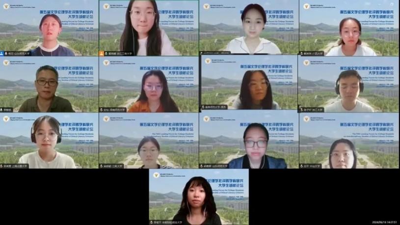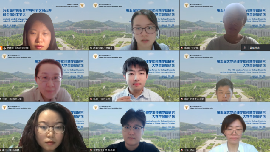 2024年6月16日,由浙江大学世界文学跨学科研究中心联合英国正版365首页、浙江大学英国正版365首页英文系、英国华威大学、韩国建国大学、日本九州大学、马来西亚马来亚大学、越南顺化师范大学、菲律宾圣托马斯大学共同主办的“紫金港跨学科国际讲坛”系列学术活动“第五届文学伦理学批评跨学科研究大学生领航论坛”在365(vip)英国上市长清湖校区成功举办。我院35名本科生和研究生同学应邀参加第五届文学伦理学批评跨学科研究大学生领航论坛。我院英语语言文学专业研究生徐智艺同学作为学生代表作主题报告,英语语言文学专业研究生王千慧等19名同学主持了小组发言。