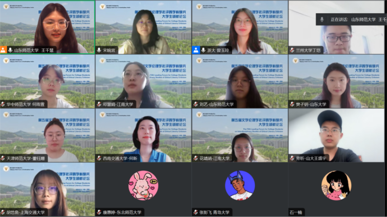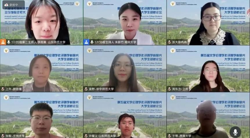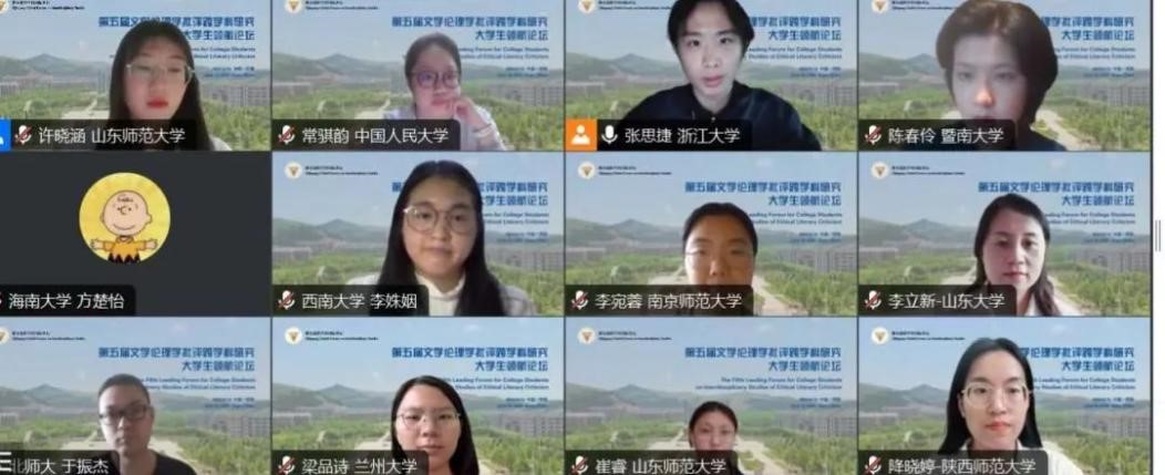 16日上午,我院徐智艺同学作题为“《钓鱼的男孩》中的伦理悲剧与寓言”的主题报告。高奋教授在评议中指出,徐智艺将小说文本和文学伦理学批评术语巧妙结合,就弑兄、杀父、乱伦三个主题,从伦理环境、伦理困境、伦理选择和伦理悲剧等方面层层展开,并拓展至伦理悲剧背后的“寓言”。这不仅体现了论文研究的深度,而且增强了论述的说服力。此外,高教授就如何进一步修改完善论文提出建议。16日下午,我院35名本科生、研究生在线上分别于不同分论坛中发言,围绕文学伦理学批评基础理论与文本分析、文学伦理学批评理论体系探讨、中国文学与文学伦理学批评、英国文学与文学伦理学批评、美国文学与文学伦理学批评、日韩文学与文学伦理学批评、非洲文学与文学伦理学批评、中外戏剧与文学伦理学批评、科学选择与科幻文学、伦理教诲与儿童文学、跨媒介与跨学科研究、族裔文学的伦理视角等12个议题展开热烈讨论。各小组评议专家对大家的成果表示肯定,并在论文选题、核心概念界定、框架布局、学术规范等方面提出宝贵建议。本次论坛既是开展学术交流、展示山师外院学子风采的良好平台,也为我院探索跨学科教育理念与教学改革提供了宝贵经验。