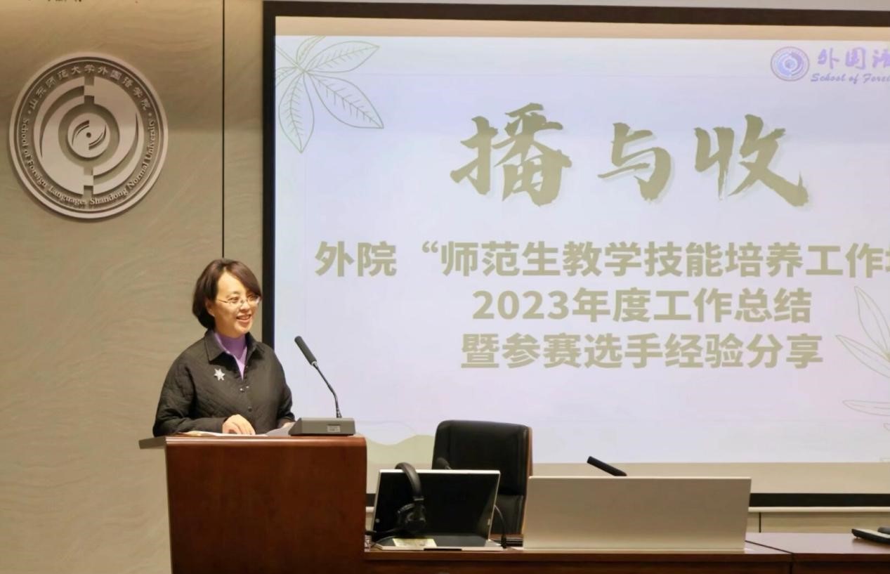 会上首先由王锦老师对2022年至2023年师范生教学技能培养工作坊的工作成就进行总结。她指出,工作坊自2019年6月成立以来的四年时间,始终以当前各类师范生从业技能大赛人才选拔和培养为切入口,打造有利于学生专业成长、有助于教师专业发展的学院人才培养和教师专业发展的共同平台。经过工作坊培养,我院学子在全国和全省范围重要师范类技能竞赛中收获颇丰。尤其是在2022年和2023年,工作坊团队师生共斩获国家级一等奖2人次、省级一等奖项7人次、省级二等奖6人次、省级三等奖5人次。其中2022年的“第十届山东省师范类高校学生从业技能大赛”英国正版365首页6人团队战绩卓著,共获得4个一等奖、1个二等奖、1个三等奖的优异成绩;在2023年“第十一届山东省师范类高校学生从业技能大赛”上,我院共有10名同学获得省赛决赛资格,成为我校各学科各专业获得决赛资格最多的一支参赛队伍,并最终获得3个一等奖、4个二等奖、3个三等奖的好成绩。我院2020级英语专业王艺超同学同时获得国家级和省级师范类高校学生教学技能大赛3个一等奖项,成为一颗耀眼的教学新星。