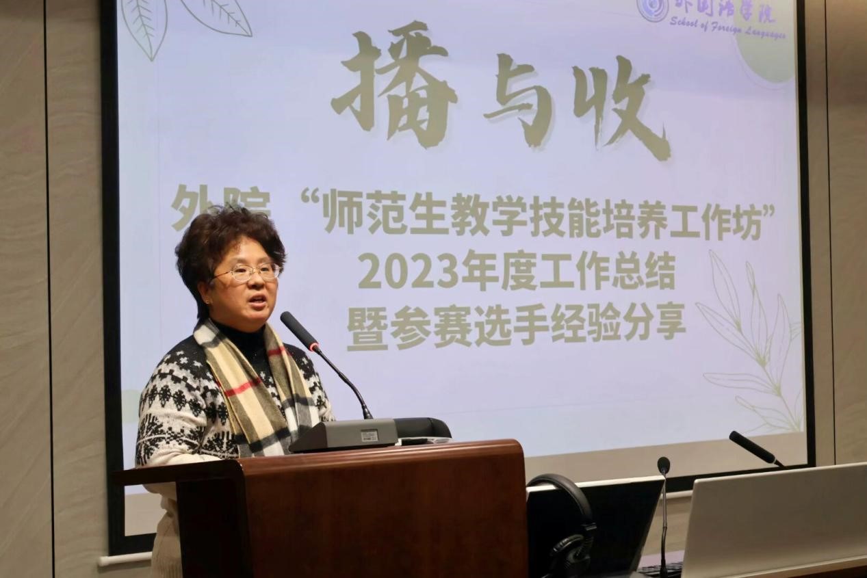 随着我国基础教育课程改革与建设的推进,立德树人成为新时代背景下教育的根本任务。教育大计,教师为本。师范类高校如何进行新时代高质量师范人才培养,为基础教育输送优秀后备教师,成为当前我校和我院关注的工作重点。我院“师范生教学技能培养工作坊”为此进行了积极尝试,并取得优秀成果。12月21日下午,由工作坊教师团队和外院学生会学习竞赛部联手举办的“播与收----外院师范生教学技能培养工作坊2023年度工作总结暨参赛选手经验分享会”于长清湖校区文渊楼B区242会议室成功举行。