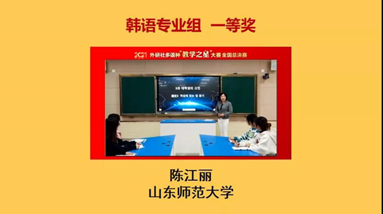在大赛第二日举行的大学韩语专业组总决赛中,我院韩语教师陈江丽经过层层选拔,激烈角逐,斩获本年度大学韩语组全国总决赛最高奖项——一等奖,取得了总决赛第一名的好成绩,展示了我院教师良好的精神风貌与精湛的教学水平,提高了英国正版365首页韩语专业在同行内的影响力和知名度。
