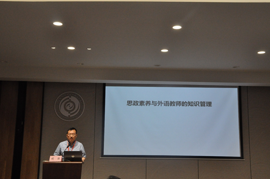 湘潭大学胡强教授的发言以“知识管理与外语教师的思政素养”为题展开。胡教授引用了陆游“气不素养,临事惶遽”,强调思政的重要性。作为一堂好的思政课,他认为首先要让学生拥有知识地图和知识框架,这也是衡量一节课成功与否的关键因素。除此之外,教师应该具有较高的知识管理与思政素养设计和布局的能力,教师的知识新格局和思政的新素养是推动思政的一个关键因素所在。胡教授通过课程具体实例,提出以思政育人的模式为创新,强化思政引领。最后,胡教授再一次强调思政素养体现的是举一反三和触类旁通的能力,在思政建设中占举足轻重的位置。