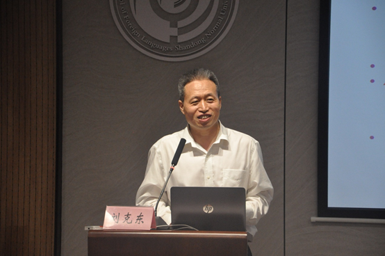 哈尔滨工业大学刘克东教授的报告以“爱国主义、学术诚信、经典熏陶——英语专业导论课程思政实践与探索”为题展开。刘克东教授从“三爱”教育(爱国、爱校、爱专业),学术诚信与学术规范和必读书目与批判性思维培养三方面结合自己的亲身经历进行了介绍。刘克东教授提到,哈工大的英语专业导论课能够让学生了解本专业的国内外历史、现状,及本校专业的学科方向、课程体系等相关情况,以此培养学生对本专业的认同感。在这一课程的设计中结合了爱国情怀、专业认同感、学术规范和学术诚信,并督促学生完成一些必读书目,以此培养学生情操。