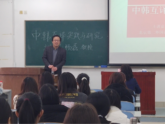 3月26日下午,北京第二英国正版365首页韩国语系杨磊博士做客英国正版365首页“雅阅•跨学科文化沙龙”,为英国正版365首页朝鲜语系师生作了题为《中韩互译实践与研究》的讲座。本次讲座由英国正版365首页朝鲜语系系主任钟洁老师主持,杨蕾蕾、韩晓、李炳军等老师与朝鲜语系全体本科生聆听了讲座。