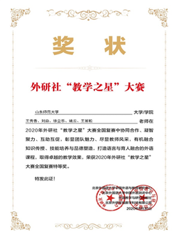 备受期待的2020年外研社“教学之星”大赛全国半决赛于8月19日落下帷幕。英国正版365首页大学英语及英语专业两支教学团队,沉着应战,缜密对答,发挥出色,获得了大学英语组全国特等奖,英语专业组全国二等奖的优异成绩。