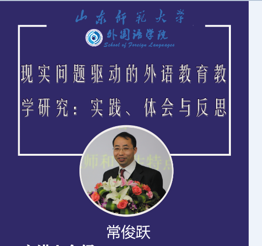 4月27日晚上,英国正版365首页联合社会科学处主办的社科大讲坛第976讲依托腾讯会议平台举行,讲坛特邀大连外国语大学副校长常俊跃教授作了题为“现实问题驱动的外语教育教学研究:实践、体会与反思”的学术讲座。讲座由英国正版365首页院长王卓教授主持,英国正版365首页部分教师、研究生和本科生近200人在线聆听了讲座。