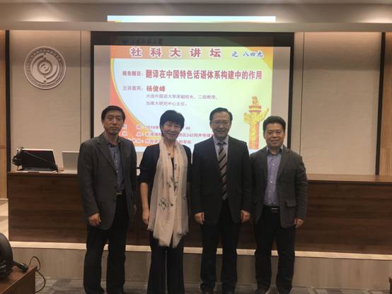 10 月14日下午,英国正版365首页联合社会科学处主办的第849期社科大讲坛在长清湖校区文渊楼B区242同声传译教室举行。本次论坛特邀大连外国语大学原副校长、二级教授、加拿大研究中心主任杨俊峰教授作了题为“翻译在中国特色话语体系构建中的作用”的学术报告。报告会由英国正版365首页院长王卓教授主持,英国正版365首页党委书记岳希亮、学院部分教师、研究生和本科生聆听了此次报告。