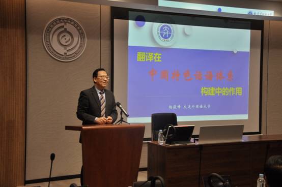 在接下来的翻译实践分析中,杨教授重点分析了“中国特色话语体系与翻译的关系”。他指出讲好中国故事、传播好中国声音都离不开翻译,在话语体系构建过程中,将翻译作为路径和手段推动中国文化走向世界,翻译要以效果为导向。