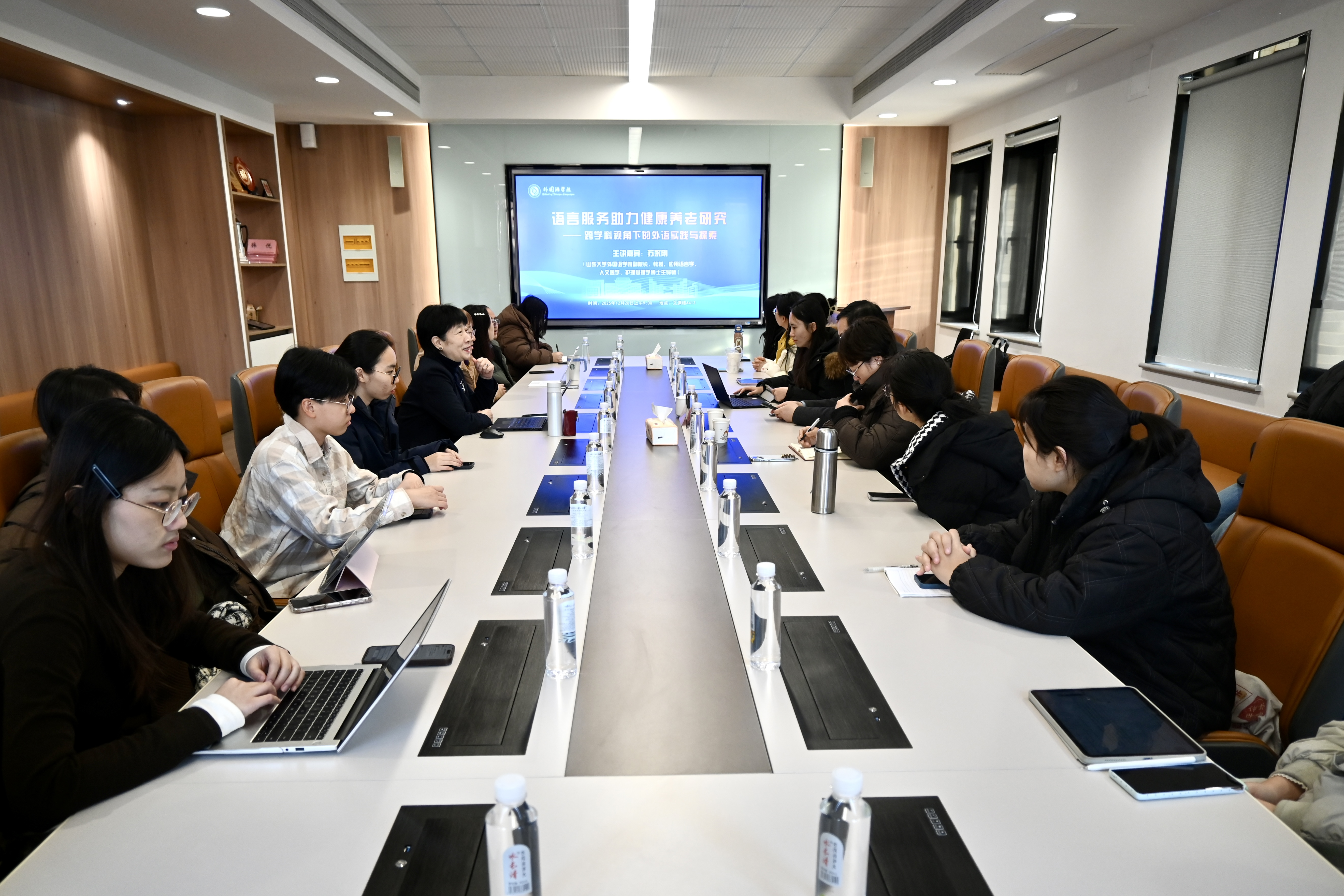 2025年12月26日上午,英国正版365首页在A413会议室成功举办“语言服务助力健康养老研究——跨学科视角下的外语实践与探索”专题讲座。本次讲座特邀山东大学英国正版365首页副院长苏永刚教授担任主讲嘉宾,由英国正版365首页院长王卓教授主持,英国正版365首页相关研究领域教师和研究生30余人参与活动。