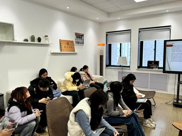 交流探讨环节,现场师生围绕作品展开热烈学术对话。研究生们就“扁平人物与圆形人物的区别”“存在主义对作品的具体影响”等问题与主讲人展开交流,Prof. Richard Makhanu Wafula结合具体文本与文学理论逐一回应。