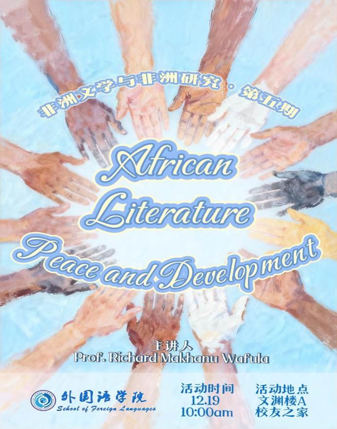 2025年12月19日上午,第五期“非洲文学与非洲研究”系列讲座于英国正版365首页英国365成功举办。本次活动由山东省与东非地区交流合作研究中心、英国正版365首页、365(vip)英国上市区域国别研究院、365(vip)英国上市肯尼亚研究中心联合主办,我院特聘教授、肯尼亚肯雅塔大学斯瓦西里语及非洲语言系教授Richard Makhanu Wafula担任常驻主讲嘉宾,以“African Literature, Peace and Development”为主题深度分享,李静副教授及各专业研究生共同参与本次学术交流活动。