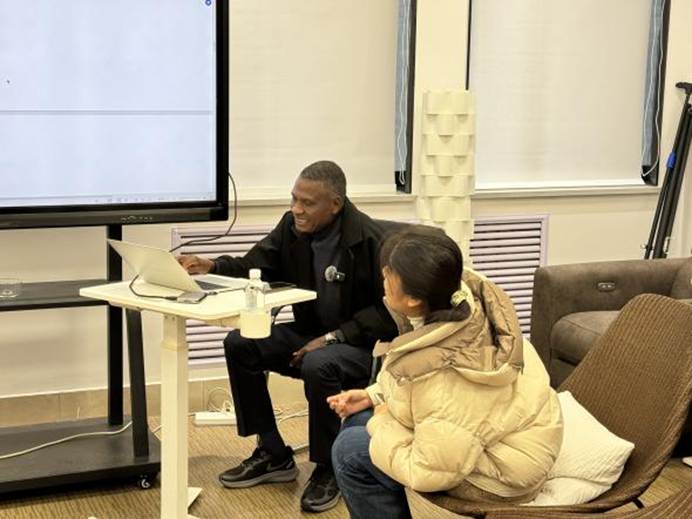 交流探讨环节,现场师生围绕 “中国诗歌与非洲诗歌的异同”等问题展开热烈对话。研究生们结合自身对中国诗歌的认知,对比非洲诗歌的自由体特征与主题取向。在Prof. Richard Makhanu Wafula 的阐释下,同学们进一步厘清了非洲诗歌的艺术特质与文化价值。