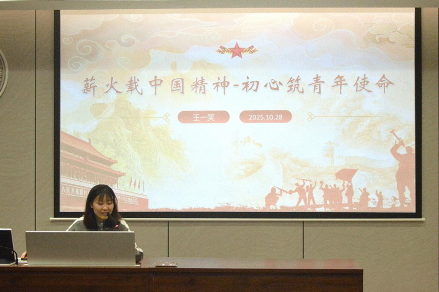 主讲人王一笑以 “薪火不灭,使命在肩” 为开篇主题,阐释了 “薪火赓续是文明延续与精神接力” 的深刻内涵。她从核心要义与发展脉络出发溯源中国精神,梳理出其起源于先秦诸子思想,在近代林则徐销烟、戊戌变法等历史事件中逐步觉醒,又在现代大庆 “铁人” 精神的孕育、改革开放的创新实践中持续发展的完整历程。随后,她聚焦青年的传承使命,阐述了青年可通过理论学习,结合党史团史研习、志愿服务参与等实践路径,深化对中国精神的认知。最后,王一笑以嫦娥五号探月工程、脱贫攻坚伟大成果为例,深入剖析其中蕴含的成功密码,并与广大青年共勉,携手以青春之力筑牢强国之路。