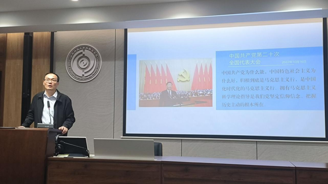 授旗仪式后,学院党委书记王松讲授开班第一课。他结合自身工作经历,围绕习近平总书记关于青年工作的重要论述,从学习、实践、信念、规矩、使命五个方面,讲解了合格团干部的成长路径。他提到,团干部要持续学习,强化理论、提升技能;注重实践,结合专业和社会需求参与“三下乡”等活动,主动担当;坚定信念,树立正确三观;牢记使命,在青春赛道上为民族复兴努力奋斗。