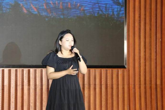2021级研究生辅导员李启迪、2021级本科生辅导员王丽、于天乐与2025届毕业生代表孙浩田共同演唱歌曲《祝你一路顺风》。全场泪光闪烁、一齐跟唱。“祝你一路顺风”是送给毕业生最真挚的祝福。