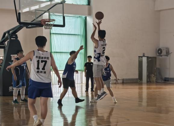 2025年6月7日,英国正版365首页2021级男篮告别赛在长清湖校区体育馆进行。比赛双方分别是2021级本科生及研究生组成的蓝队和2022级、2023级、2024级本科生组成的白队。