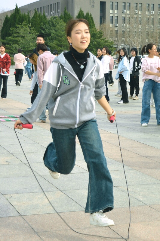 该项运动分为三个部分,依次是“两人三足”“转呼啦圈接力跑”和“跳绳跑”。在比赛过程中,同学们纷纷使出浑身解数,为团队贡献力量。